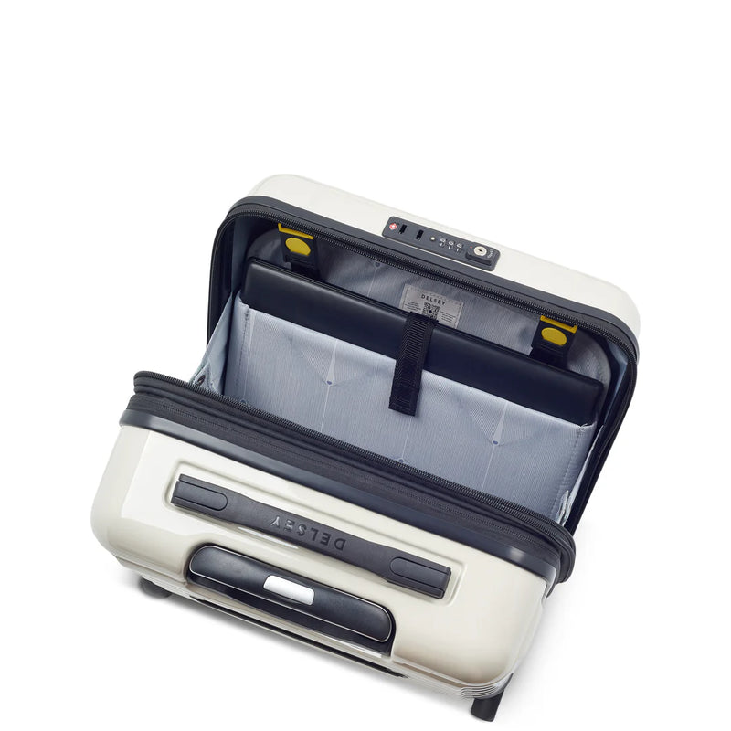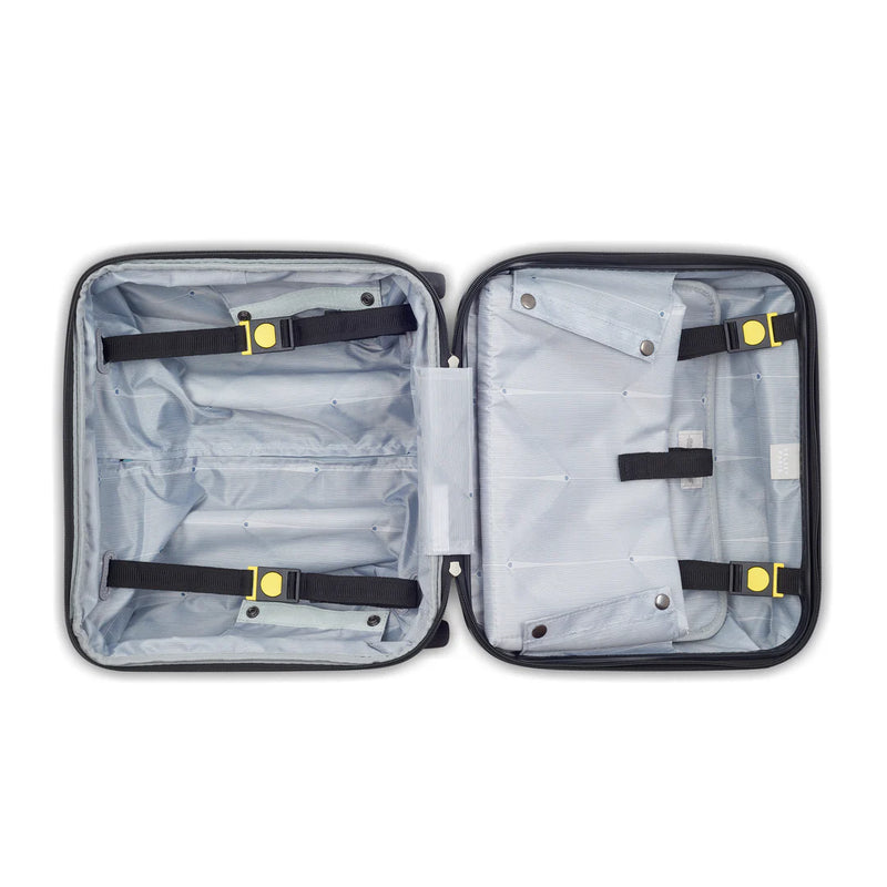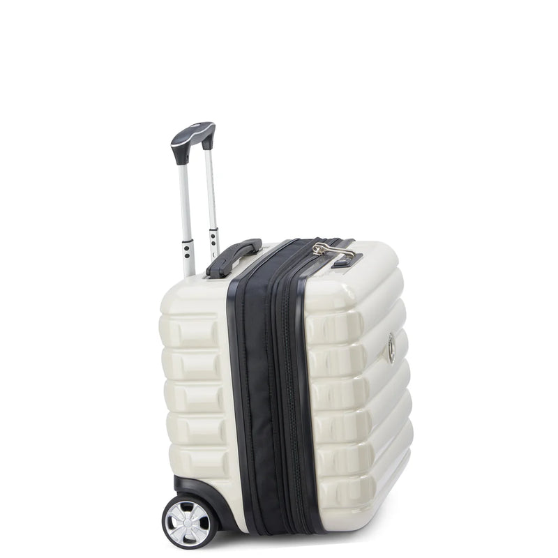 The SHADOW 5.0 - Underseater 2 wheels features a patented SECURITECH® closure system for enhanced security and flexibility. It includes a TSA-approved combination lock, expandable compartments, and adjustable straps to secure folded garments. A padded pocket protects laptops up to 14", while a trolley attachment loop and two wheels ensure easy mobility. Measuring 38 x 37 x 24/27 cm with a 32L capacity, this lightweight 2.46 kg case is crafted from 100% polycarbonate and backed by a 5-year warranty. Available in blue, it combines durability with practical design for expert travelers.